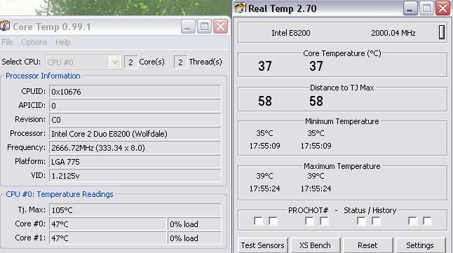 Wolfdale E8200 Temps